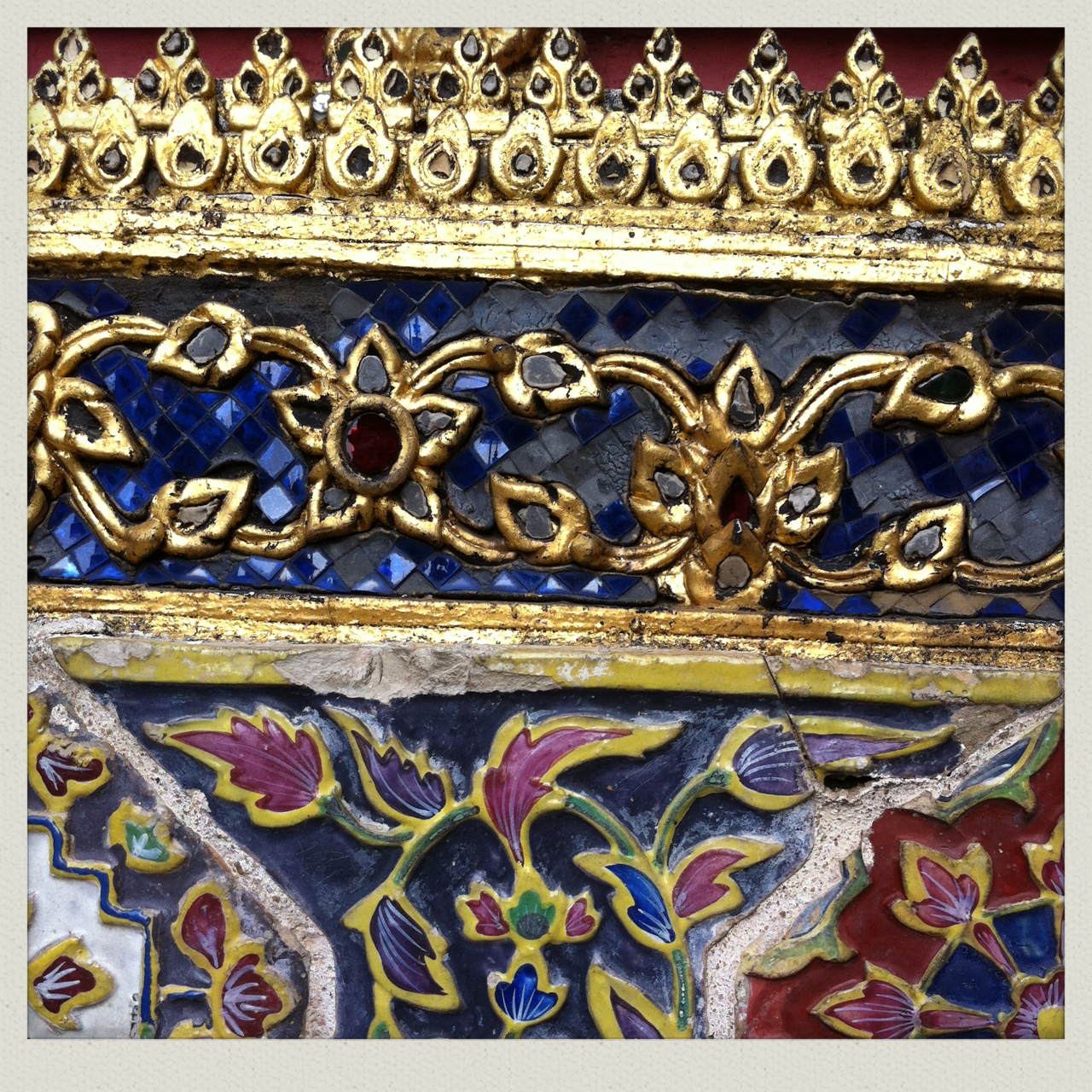 Construits au XVIIIe siècle par le roi Rama 1er, ces monuments sont en effet d'une richesse et d'un raffinement extrêmes. Feuilles d'or, pierreries, mosaïques. Fresques, sculptures. Turquoise, jaune, rouge, vert émeraude. Chatoiements et étincèlements sous le soleil. C'est juste magnifique !